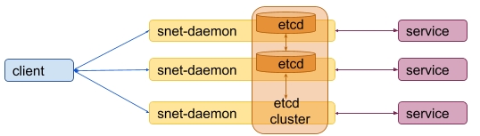 Etcd was chosen because it is written in Go, and has out of the box embedded server support. This means that its nodes can be started and stopped by snet-daemon replicas.