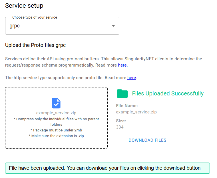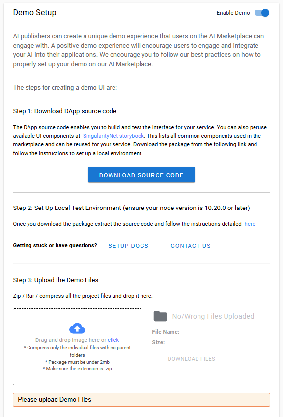 Note: This is the only method that allows creating marketplace UI demos. Services published via CLI or TUI can only be accessed programmatically.